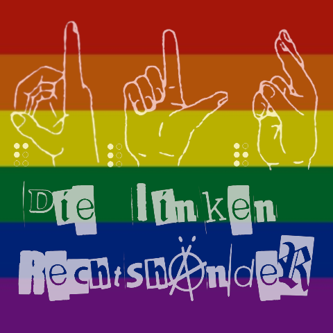 Du hast es geschafft. Du hast unsere Website gefunden. Herzlichen Glückwunsch. Die linken Rechtshänder freuen sich darüber. Und jetzt viel Spaß beim erkunden. Hugo und Thomy Logo mit Gebärden + Braille Regenbogen Begrenzte Reifheit